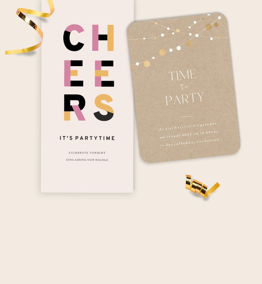 Zusätzlich können thematische Motive, die das Thema der Feier widerspiegeln, die Karten auflockern. Bei Kartenliebe haben Sie die Wahl aus einer Vielzahl an Motiven oder können eigene Fotos und Grafiken einfügen, um die Karte oder Einladung individuell zu gestalten.