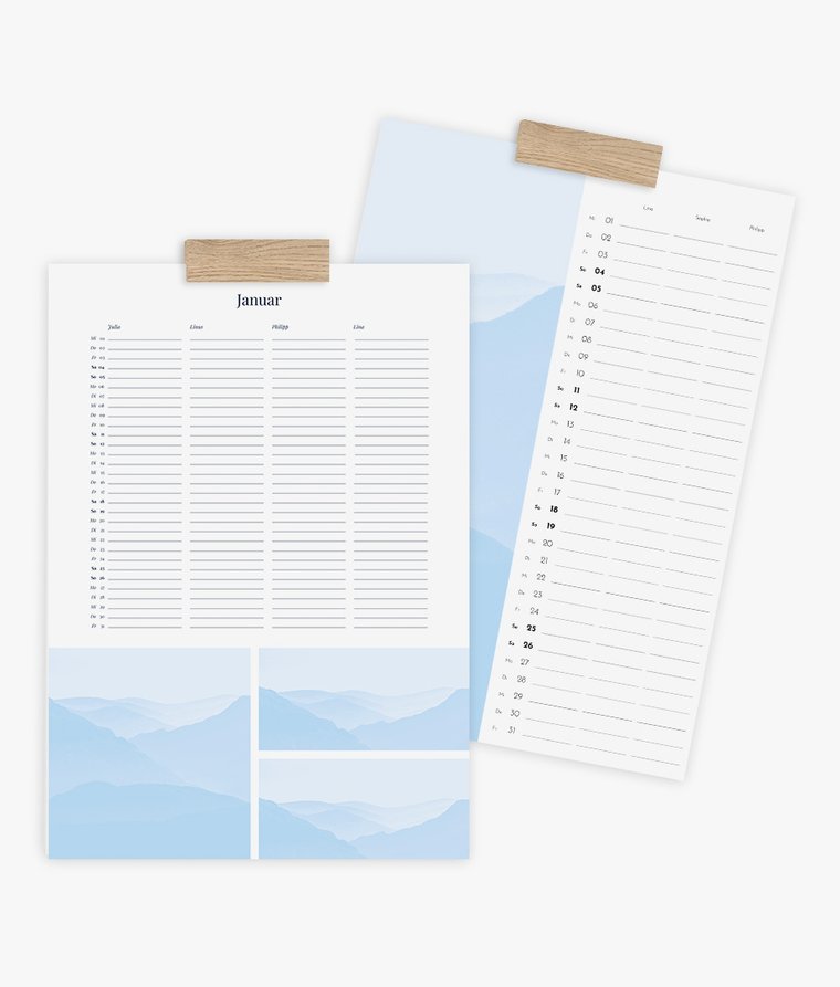 Neben dem Familienplaner bieten wir Ihnen eine Vielzahl weiterer Kalenderformen für Ihren Kalender mit Fotos. Lassen Sie sich von den Varianten in unserem Online-Shop inspirieren und gestalten unter anderem: