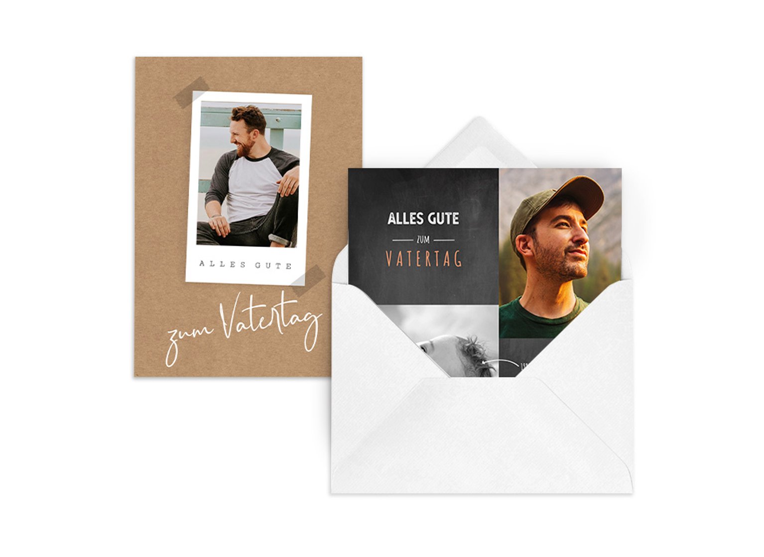 Der Vatertag ist der passende Moment, um Ihrem Vater von Herzen zu danken! Wollen Sie die Karte zum Vatertag selbst gestalten, ist Kartenliebe Ihr Designpartner. Wählen Sie aus Designs verschiedenster Stilrichtungen wie klassisch oder elegant. Unsere umfassende Farbpalette bietet Ihnen unzählige kräftige und zarte Farbtöne. Besonders persönlich wirkt Ihre Vatertagskarte mit einem gemeinsamen Foto. Zuletzt verfassen Sie einen passenden Text. Fehlt Ihnen der Ansatz, um die Vatertagskarte zu schreiben, suchen Sie in unserem Fundus nach passenden Satzbausteinen und liebevoll ausgewählten Zitaten. Lassen Sie sich für Ihre Vatertagskarte von unseren exklusiven Vorlagen inspirieren und werden Sie kreativ. Falls Sie neben einer Vatertagskarte auch individuelle Fotogeschenke zum Vatertag gestalten möchten finden Sie bei Kartenliebe unter anderem Fotobücher, Wandbilder oder Fotoabzüge zum Vatertag.